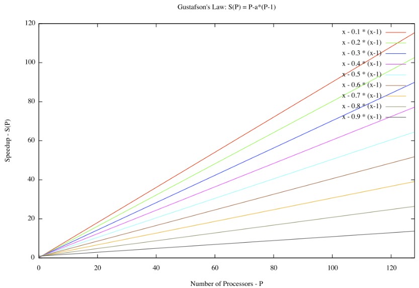 Gustafson consideraba que la ley de amdahl daba un límite para el descenso del tiempo de ejecución del algoritmo paralelo, dependiendo la fracción serie del algoritmo.