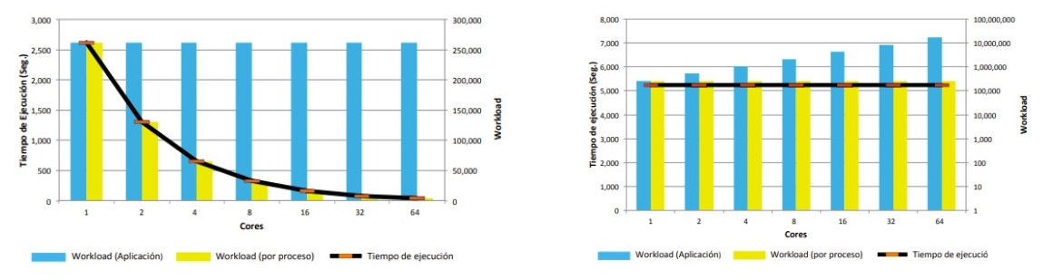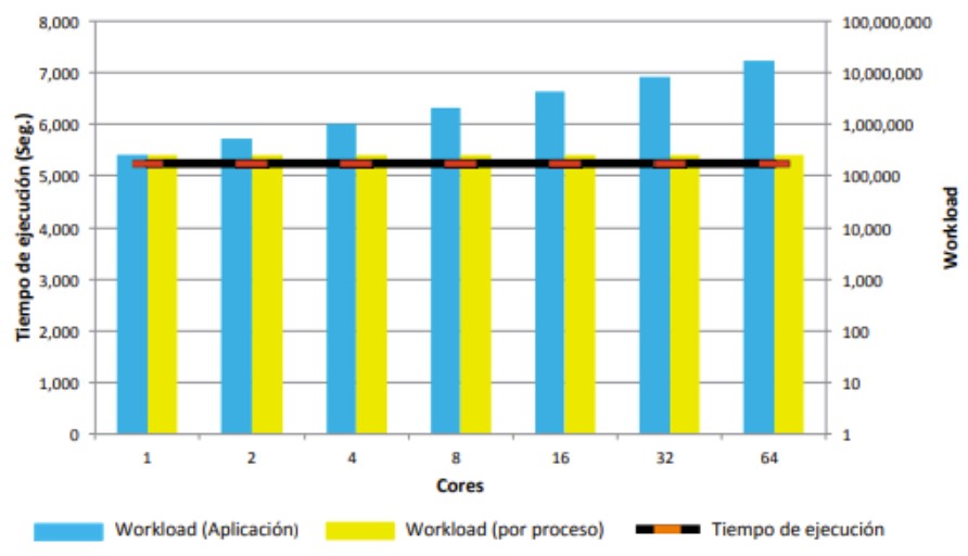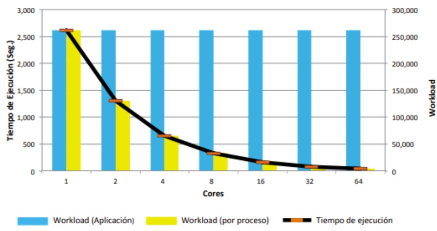 El workload es constante. El objetivo es disminuir el tiempo de ejecución de la aplicación aumentando el número de procesos.