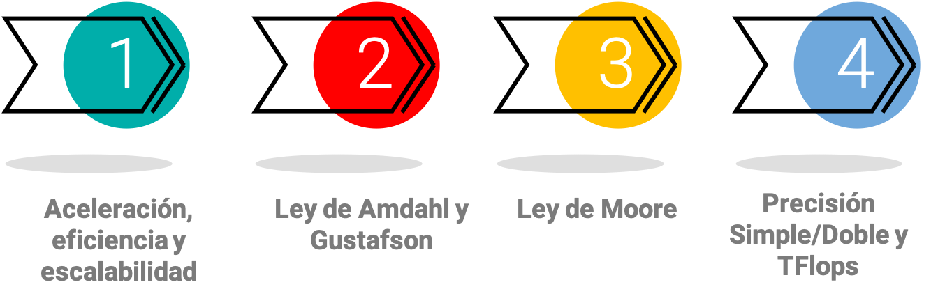 Tiempo, aceleración, eficiencia y escalabilidad#